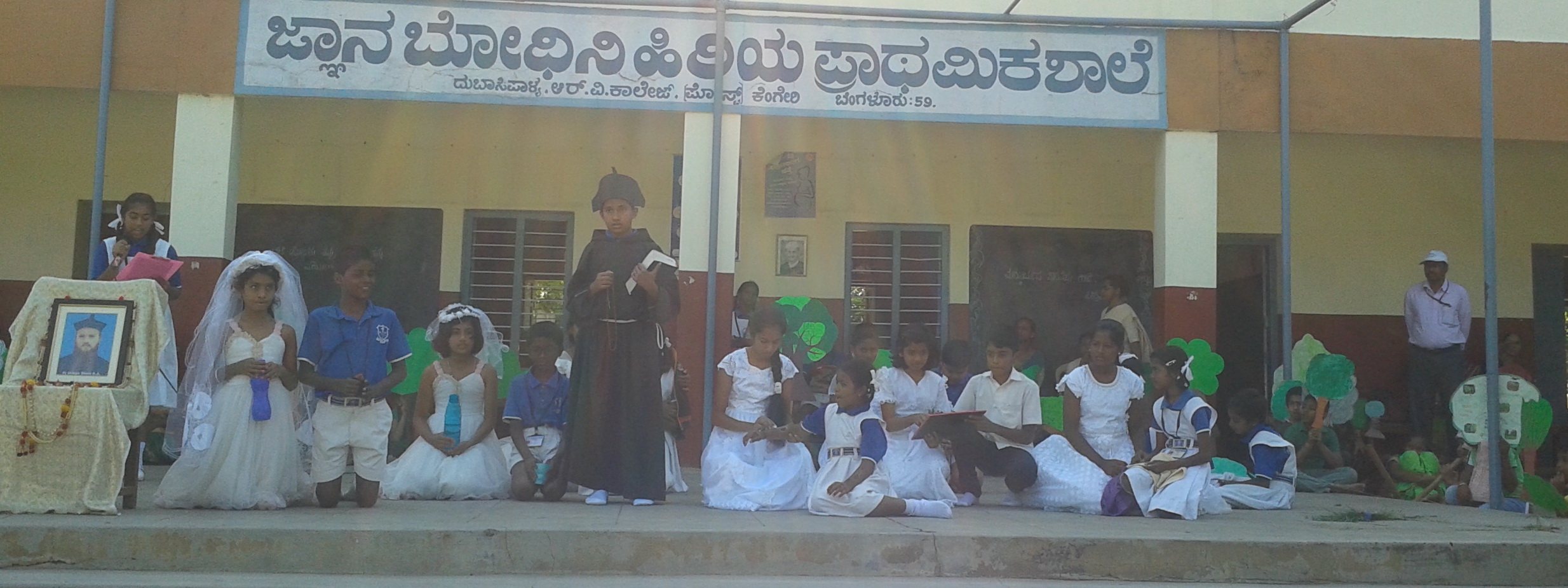 Initially Sisters stayed in a rented house at Kengeri and identified themselves among the people of the locality in every way possible. Eventually they started the nursery and Class I on the corridor of the Capuchin Friary. Sr. Apoline Pinto took charge of the school. Sr. Philomena D’Souza shouldered the responsibility next and continued the spadework started by Sr. Apoline as she died at a young age of 46 due to kidney failure.